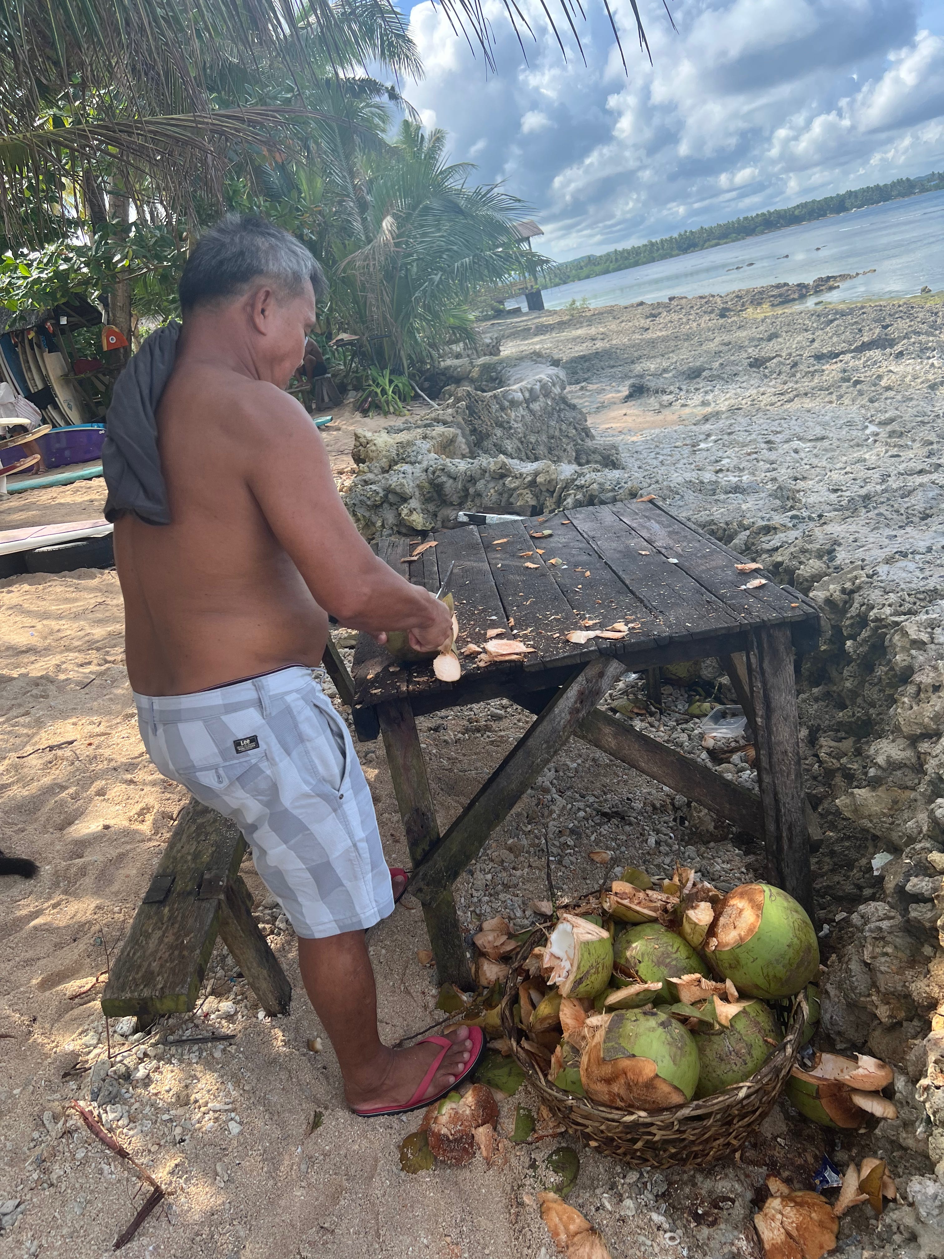 My lunch: a humble coconut. This kind man chopped it up with a machete for me because he saw that I was White.